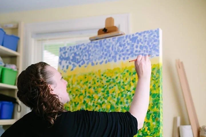The first phase of my rain paintings process is to analyze my reference imagery from a pointilism standpoint, then apply dots and daubs of thick point in the general composition that I’m aiming to create. Sometimes I do just want to freeze my process right here, because I really like how some of the dot paintings start out.