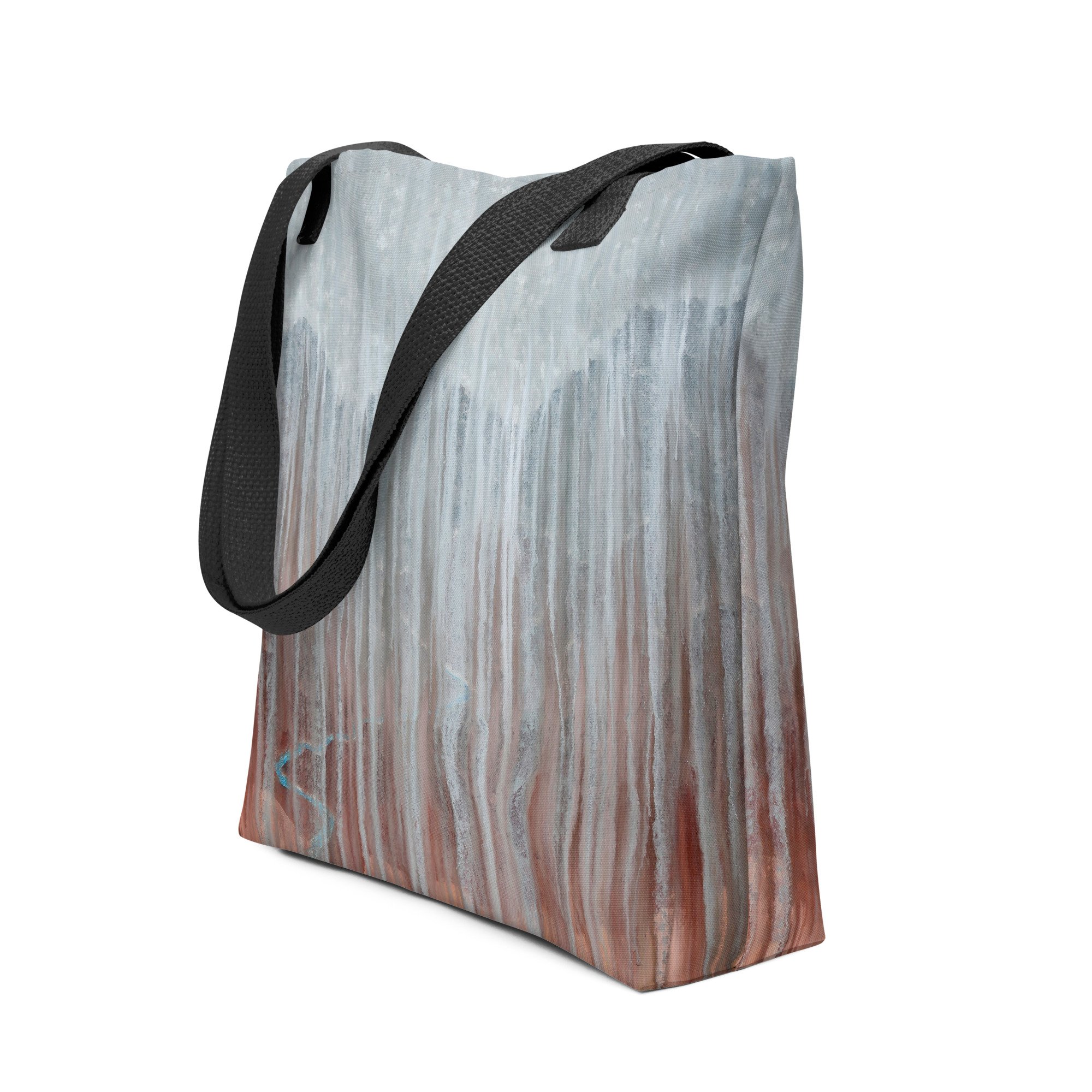 A spacious and trendy tote bag to help you carry around everything that matters. Don’t wait for a rainy day to carry colorful cargo in these toe bags bearing the rain-inspired artwork of Rachel Brask.